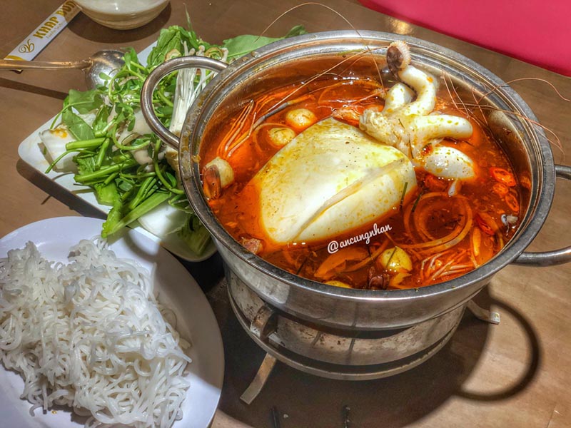 Khap Bun Kha là cái tên được nhiều người dân Đà Lạt biết đến. Khi đến đây bạn sẽ được thưởng thức món lẩu mực khổng lồ với hương vị không thể nào quên. Đó chính là dai dai, giòn giòn của mực khổng lồ. Cùng với vị tươi ngon của hải sản và rau xanh. Nồi nước dùng mới gọi là đặc trưng riêng của quán xứng đáng với món lẩu ngon Đà Lạt.
